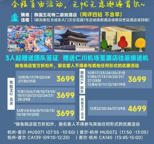 1、隨身必備攜帶品:請自備牙膏、牙刷、毛巾、洗發精等個人洗漱用品(酒店備有,但要收取費用)。 2、健康與藥物: 出外旅游,個別游客可能會因水土不服而令身體感到不適,所以客人應自備暈車藥及常用的藥品,以備不時之需。若您長期服用某類藥品,必須帶足藥物,以防萬一。 3、海關:每位旅客出入海關時,請聽從領隊安排,以免給團隊造成不便。膏狀物體、液態物體及金屬物品須全部托運,水果等違禁物品不能隨身攜帶及托運。中國海關規定:每人可攜帶人民幣2萬元或等值外幣出境。入境時,每位客人可攜帶烈酒1瓶,煙400支,嚴禁攜帶違禁物品。韓國海關檢查嚴謹,請游客配合檢查,凡入韓國境內被登記的物品,在離境時須呈報給海關查閱。游客可免稅攜帶200支香煙、1瓶洋酒入境。韓國海關規定:購買染發劑的游客,回國托運時每人只限量一瓶,超過數量拒絕托運,即被沒收。 4、退稅:如在韓國購買到可以退稅商品時,回國時需向韓國海關出示所購的商品(千萬不要打包托運到行李中)、收據、護照,以便海關蓋驗收章后在機場就近的退稅點辦理退稅。如因客人自身原因沒能退稅,由客人自行承擔所造成的損失。 5、天氣:韓國氣候,海洋性特征顯著四季分明,夏季炎熱潮濕,秋季涼爽,冬季寒冷干燥。首都首爾和北京氣溫相差不大。 6、貨幣:韓國流通貨幣為韓元。韓國境內可廣泛使用一般信用卡:VISA、EXPRESS、MASTER等。銀聯卡在很多地方都可使用。如需在國內兌換韓元,在有儲備的情況下,我社可提供服務,匯率按照韓國機場銀行匯率換取(匯率參考值約:1人民幣=160韓元左右,以當天匯率為準)。 7、行李:出外旅游應盡量少攜帶貴重物品,手提行李每人限攜帶一件,托運行李重量不超過20公斤。 8、文明禮節: 團隊觀光游覽景點的過程中請注意保持當地的清潔衛生,不亂扔垃圾,不隨地吐痰;不要大聲喧嘩。 禁止邊走路邊吸煙,必須在有煙灰缸的地方才能吸煙;禁止廁所吸煙以及把煙頭扔入馬桶。 9、語言:韓語為行政用語,大型商場可用英語交流。 10、住宿:個人財物應妥善保管,貴重物品可放于酒店前臺的保險箱。離開飯店外出逛街,請攜帶飯店名片以備迷路時使用。 11、飲水: 韓國自來水可以直接飲用。 12、時差:韓國時間比北京時間早1小時,請注意調整時差。如北京時間上午9點為韓國時間上午10點。 13、電壓:酒店一般采用220伏特電源;韓國使用兩腳圓插頭,中國電源插頭在韓國無法使用,可在酒店前臺交一定押金,租借電源轉換插頭,離店時退回電源轉換插頭并退回押金。 14、電話:韓國公用電話有藍色、銀灰色、磁卡電話三種,藍色和銀灰色電話為投幣式、為韓國境內使用,磁卡電話可打國內國際長途。如要租賃手機,需提前申請,我社在有儲備的條件下可提供租賃手機服務,租機手續在中國辦理,更快捷更方便。 15、飲食:團隊用餐分中華料理和韓國料理。韓國料理主食一般為白米飯、配以韓國獨有的泡菜(辣白菜),以及各種韓式調味料所調配的各種蔬菜。味道偏酸、辛辣,請游客做好心理準備,但此經歷也是對韓國習俗的一個了解和體驗。 16、特產:高麗參(具有防癌、防衰老、抗癌、保肝之功效),紫水晶(韓國特產,屬于世界十大寶石之一)。 17、安全:境外游覽時請注意人身安全和財產安全。整體治安相對較好,但某些國家也存在治安隱患,尤其景區、酒店大堂、百貨公司、餐廳等游客聚集地更是偷竊行為多發地,請游客務必隨同導游帶領并注意結伴而行,在游玩過程中,時刻注意自己隨身攜帶的物品安全。 乘坐交通工具時現金、證件或貴重物品請務必隨身攜帶,不應放進托運行李內;外出離開酒店及旅游車時,也請務必將現金、證件或貴重物品隨身攜帶。因酒店不負責客人在客房中貴重物品安全,司機也不負責巴士上貴重物品的安全,保險公司對現金不投保的。 |